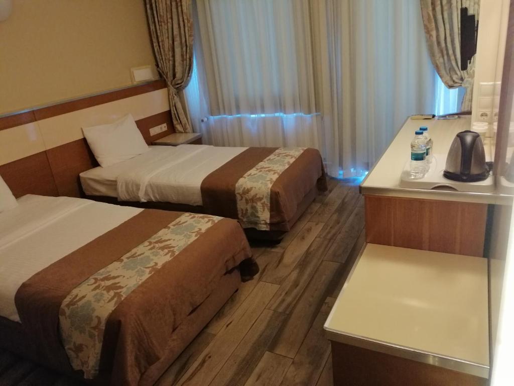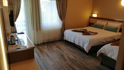 Гостите могат да се насладят на богата закуска и вечеря на шведска маса с деликатеси от турската и интернационална кухни. Има бар, който сервира коктейли, а ресторант има и места на открито в градина с много зеленина и чудни цветя. Хотелът предлага и денонощен рум-сървис.